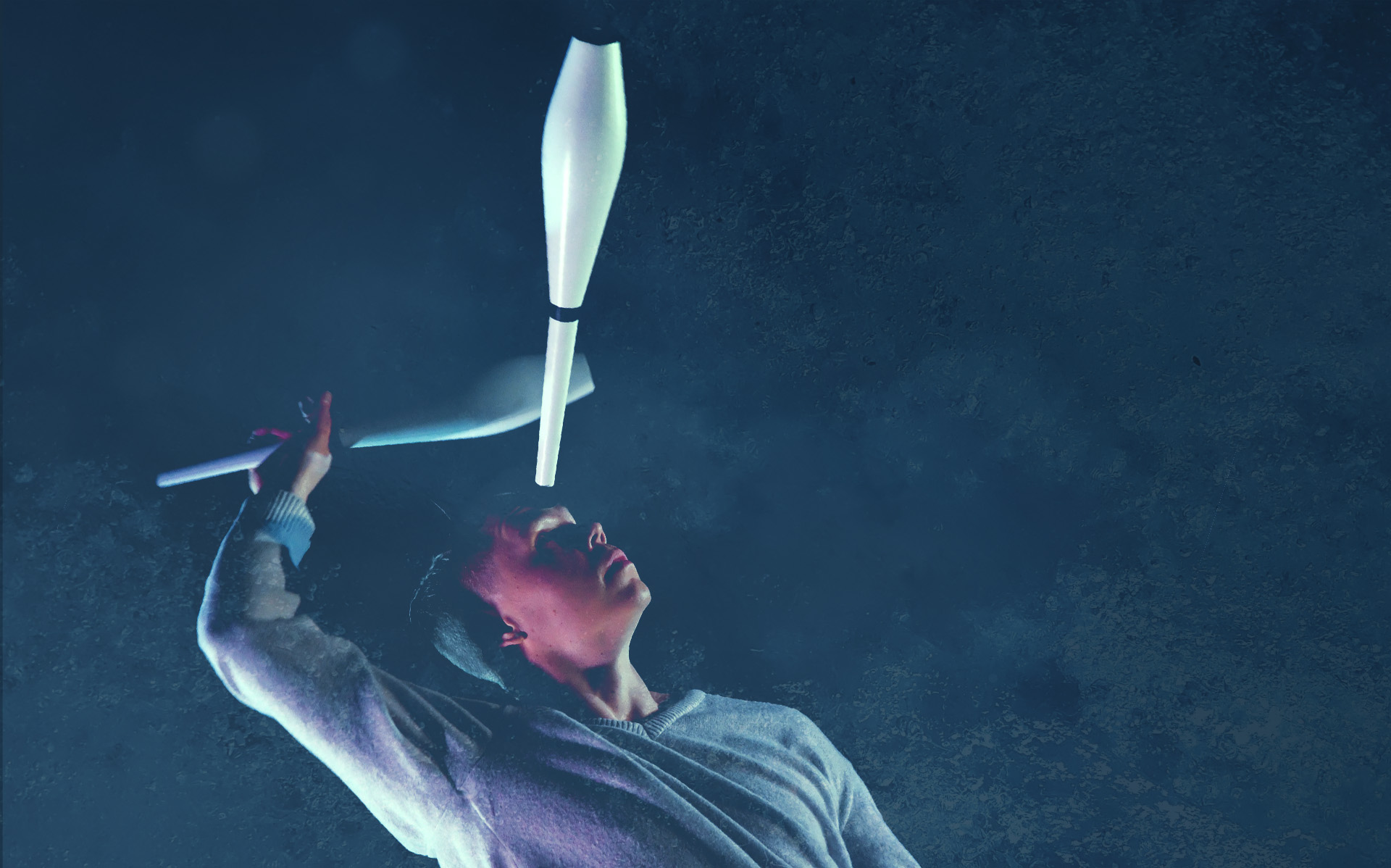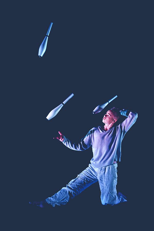 He is a founding member of the Belgian Sur Mesure contemporary circus music group that has been touring for several years in more than ten countries in Europe and Asia. In his work as a juggler, he studies movement and the use of space, and combines elements of dance in his performances. As a curious and open-minded person, he approaches new ideas and perspectives, and develops his own personal interpretation in juggling.