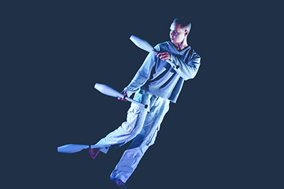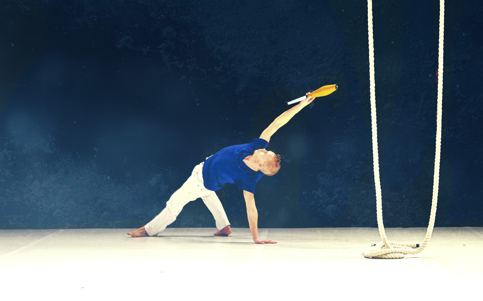 Toivo has worked in several circus groups as an acrobat, trampolinist and juggler, in Belgium, France and Finland. He also performs his own solo works in juggling.