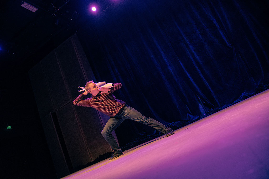 Performer in Belgian circus company Cie En Stock in the show ě. The show combines circus and dance art and got its idea from Michael Haneke’s film The Pianist. The show explores the dualism between two people: the back-and-forth going dominance of one person and the inner struggle of the other. As a combination of circus and dance, the work feeds on the fantasies and imperfections of human beings.